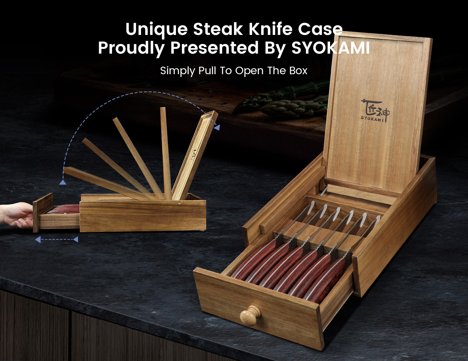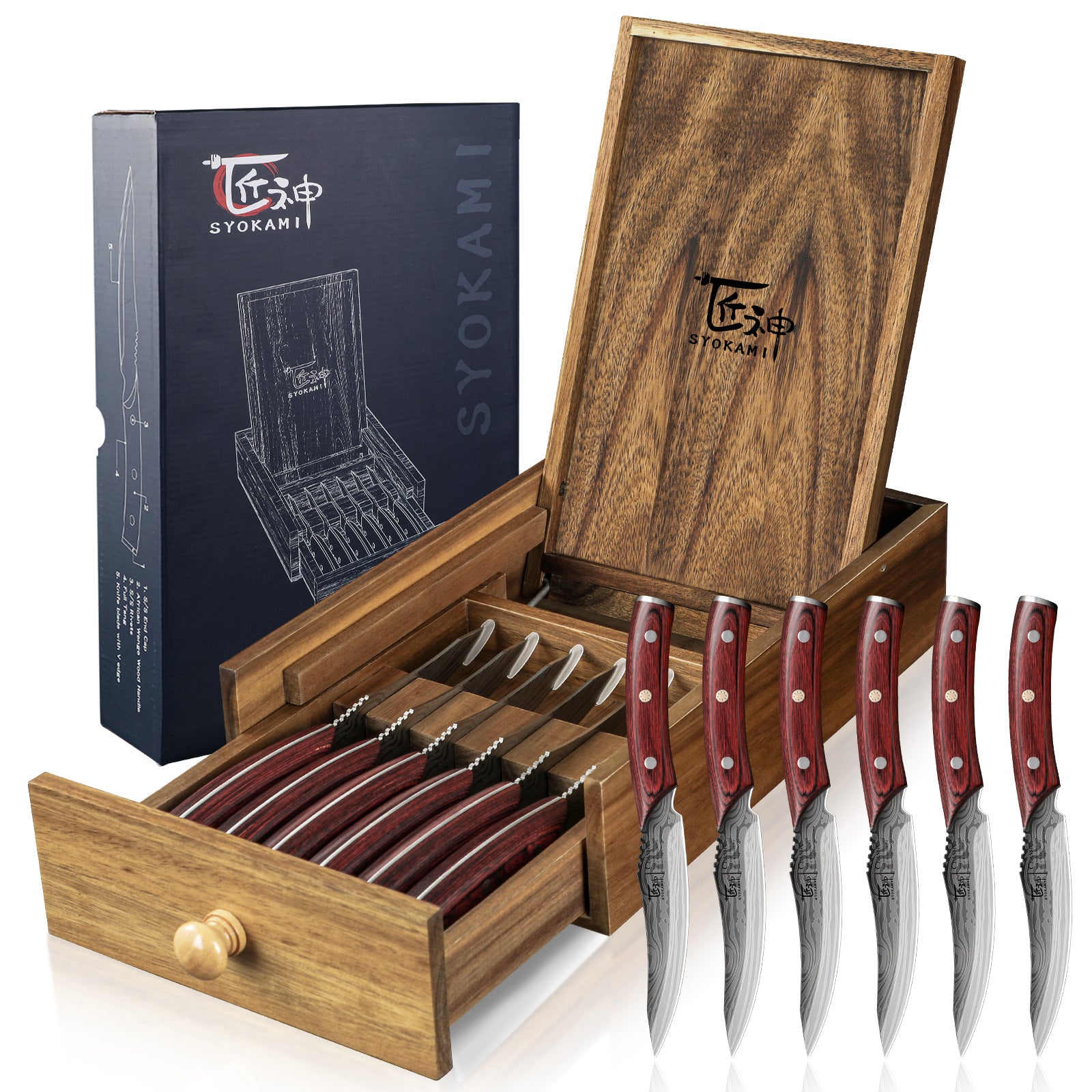 SYOKAMI Steak Knives Set of 6 with Drawer Organizer